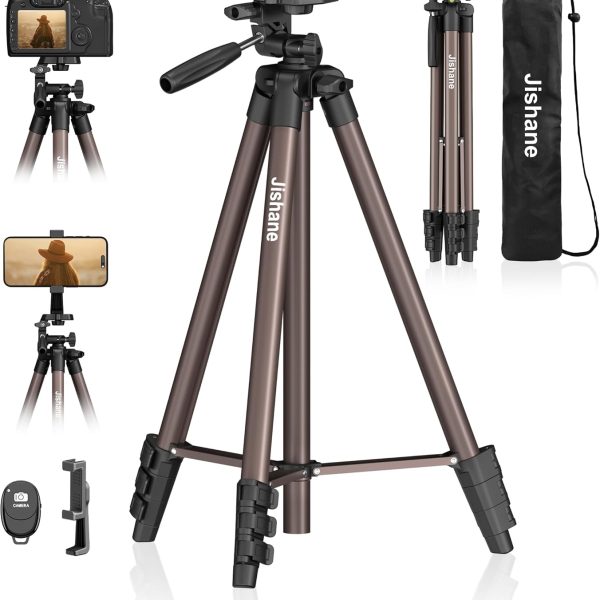 71" Camera Tripod, Lightweight Aluminum Phone Tripod with Wireless Brown