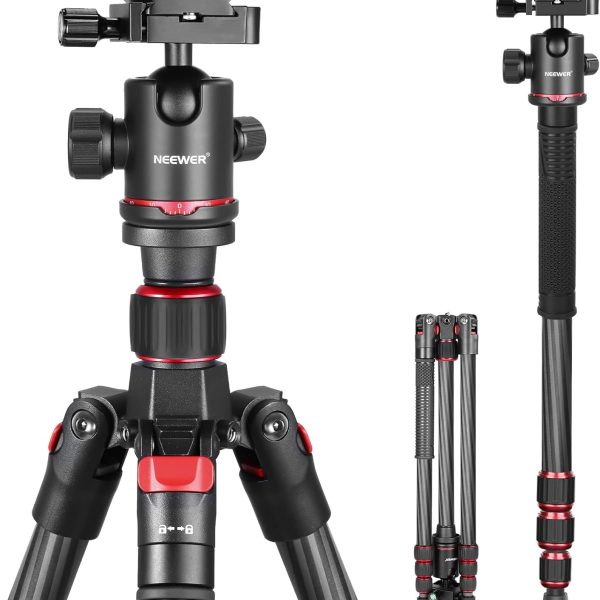 NEEWER 66"/168cm Carbon Fiber Tripod for Camera with 360° Panorama Ball Black