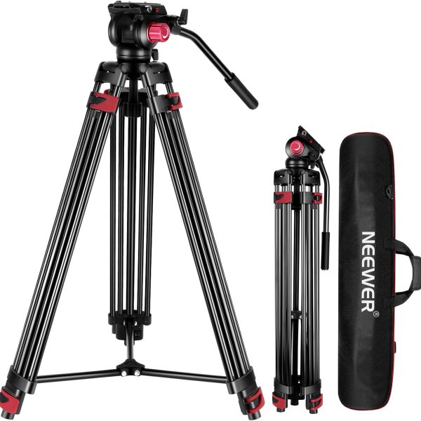 NEEWER Basic 74" Video Tripod with Fluid Head , Metal Camera Black