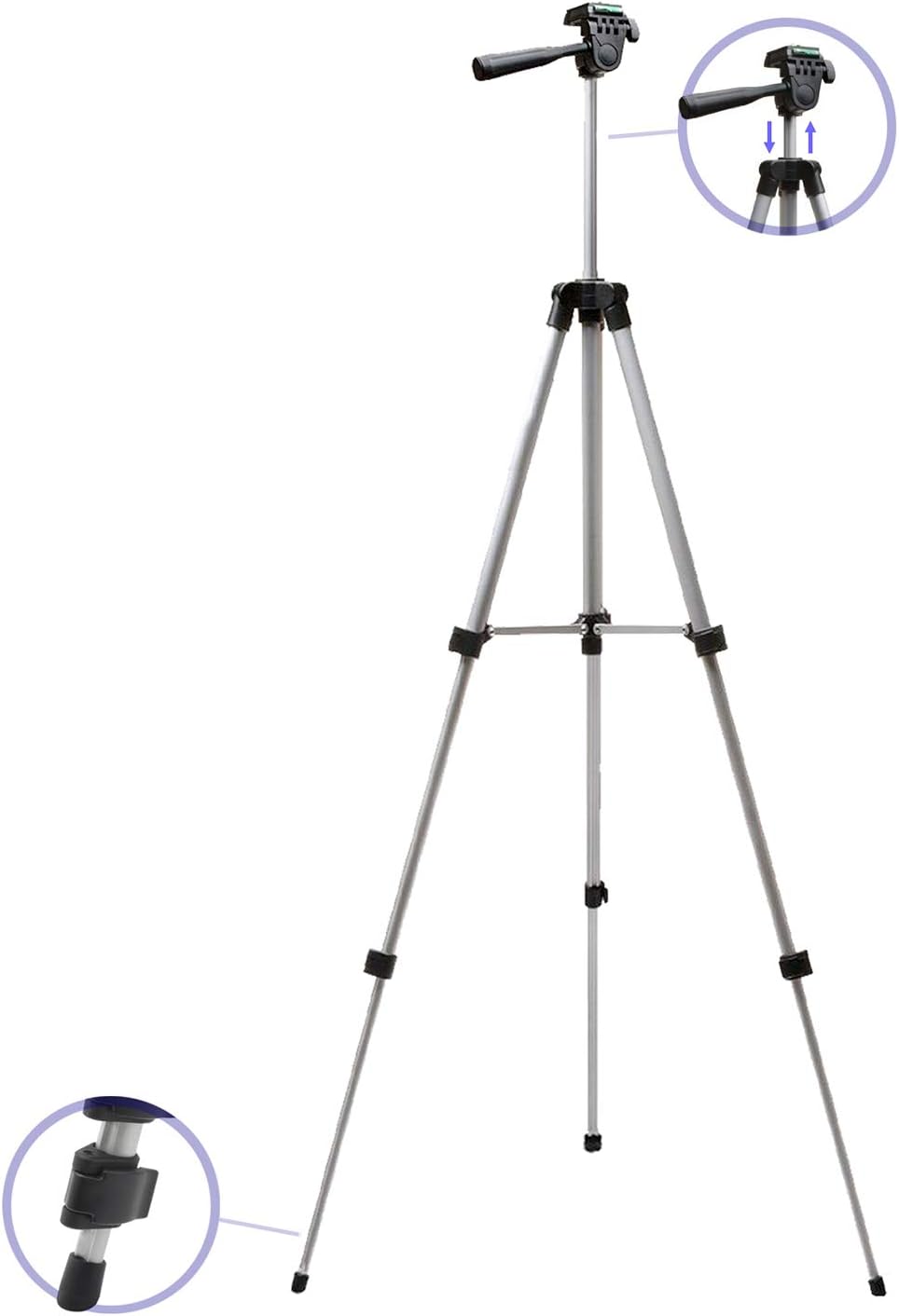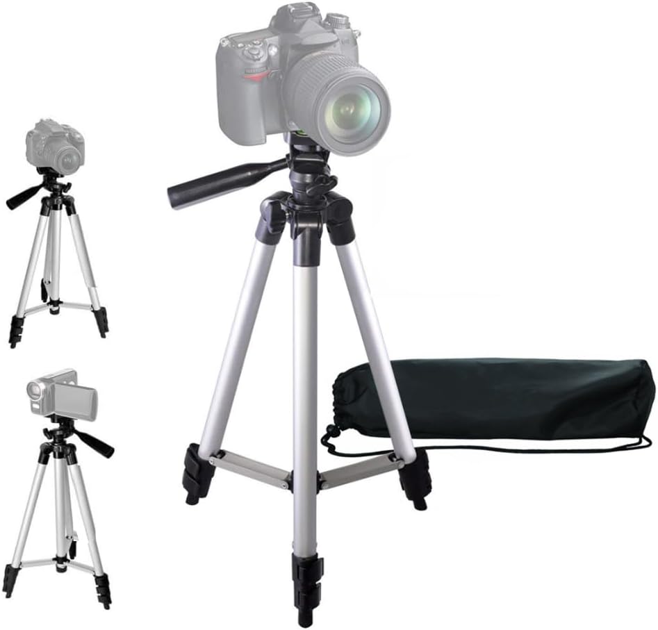 - Universal Compatibility – Designed to fit most popular camera brands, this adjustable aluminum tripod supports Canon, Nikon, Sony, and other DSLR and mirrorless cameras, camcorders, and even smartphones (phone mount not included), making it ideal for photography, videography, and live streaming.