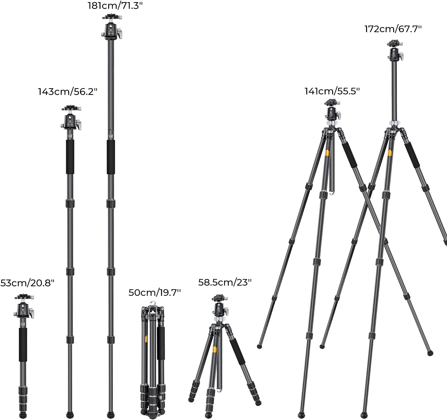 - 【High Quality Material】The 28mm full tube is made of carbon fiber,lighter and stronger,the net weight with the ball head included is only 3.88lbs that can be take outdoor easily.
