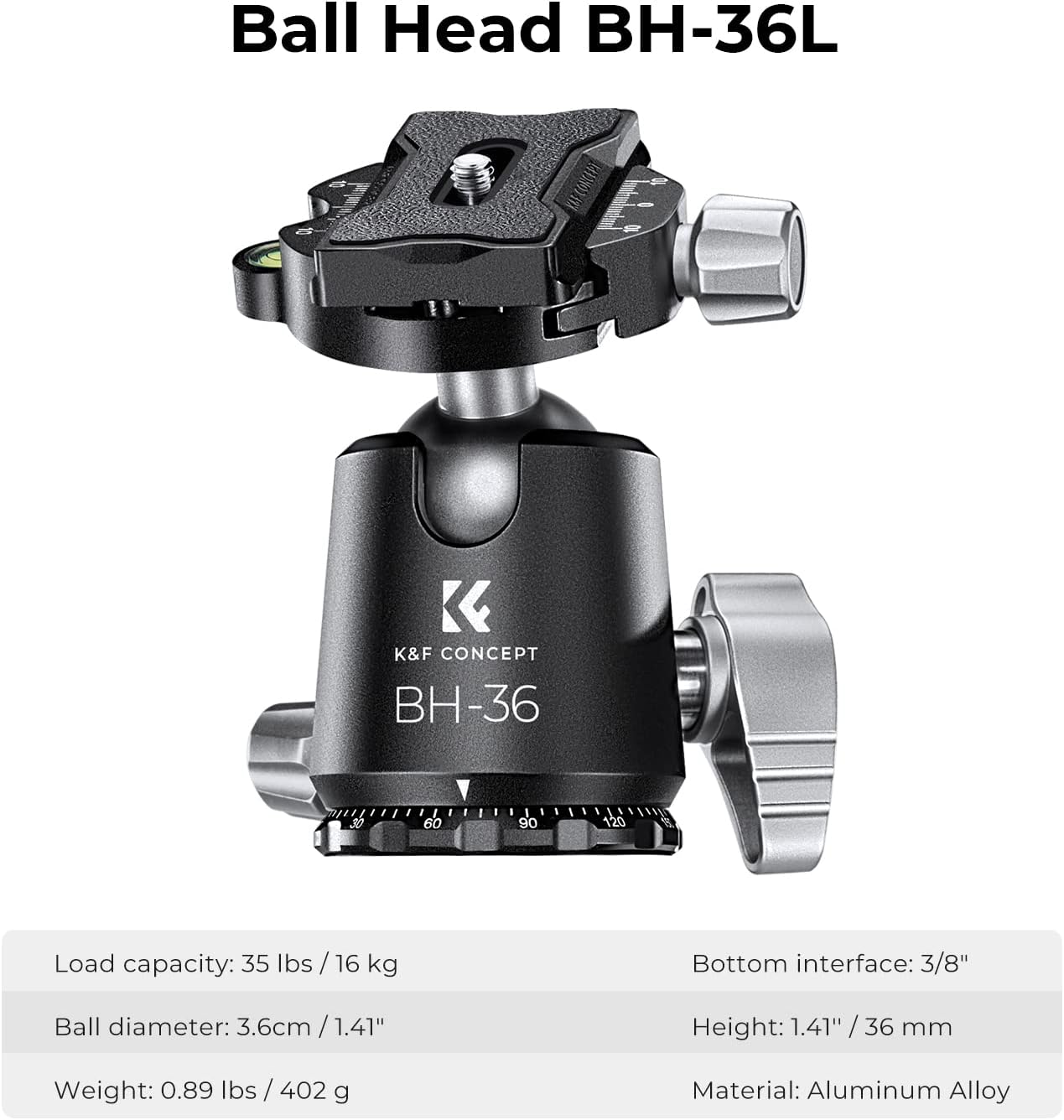 - 【16KG Load Capacity】 It provides 35.2lbs load capacity and can be rotated to any angle you want, helping to improve the range of camera activity during panning.The 360-degree panning dial lets you set up precision shots to capture the beauty of landscapes.