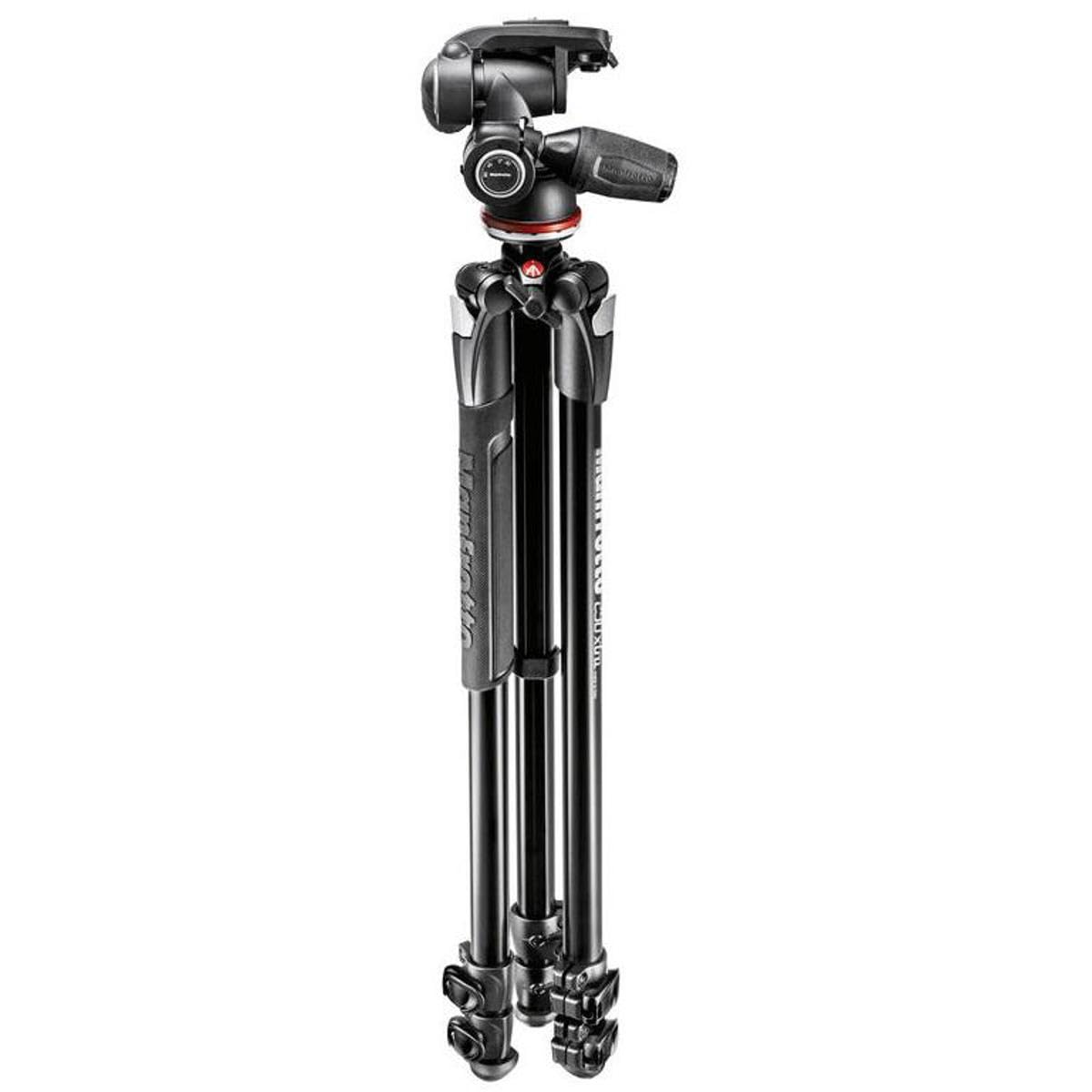 Manfrotto 290 Xtra Aluminum 3-Section Tripod Kit with 3-Way Head (MK290XTA3-3WUS), Black