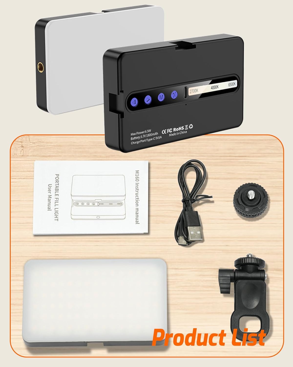 Portable Selfie Light for iPhone: 90 LED Rechargeable Phone Fill Black