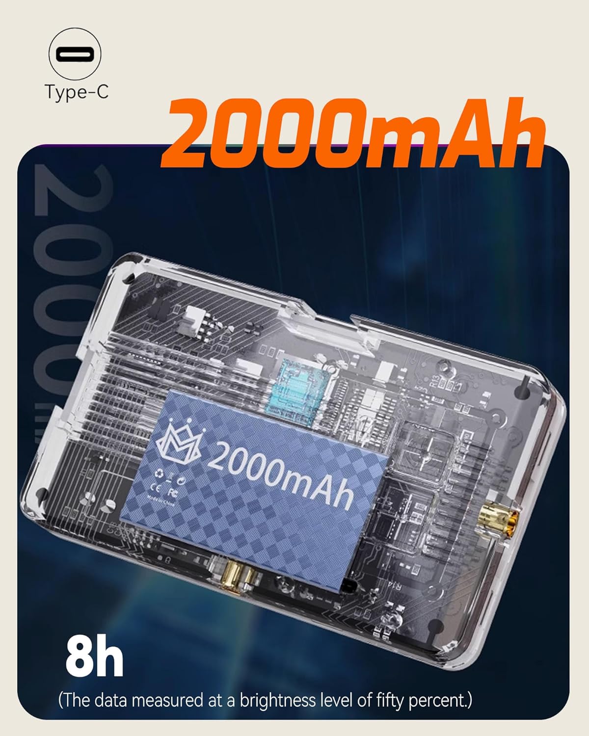 - 2-12 Hours of Battery Life: In low brightness mode, it can continue driving for up to 12 hours, even with the highest brightness, it can maintain a usage time of 2 hours. Type-C fast charging takes 2 hours to fully charge, supporting simultaneous charging and usage.