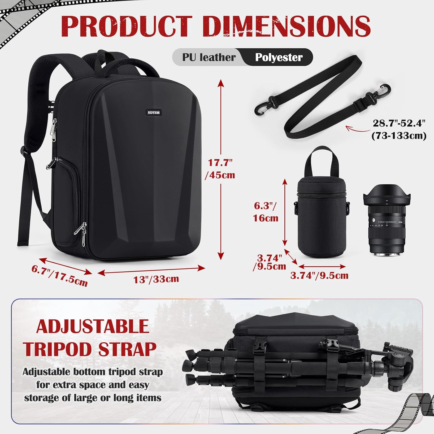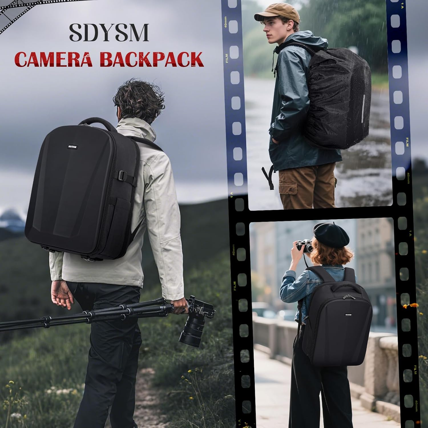 - 【SUPERIOR HARDSHELL PROTECTION & ALL WEATHER DEFENSE】Built to last, the photography backpack crafted from high-quality, waterproof and durable Oxford fabric and features waterproof PU leather hard shell front panel for added structure and protection. The high-density foam padding provides excellent shock and drop resistance for your internal equipment. For ultimate weatherproofing, an additional rain cover is included, offering double protection against rain and dust.
